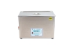 通過換能器,將功率超聲頻源的聲能轉(zhuǎn)換成機(jī)械振動,通過清洗槽壁將超聲波輻射到槽子中的清洗液。由于受到超聲波的輻射,槽內(nèi)液體中的微氣泡能夠在聲波的作用下快速變大破裂,破裂時(shí)產(chǎn)生的高強(qiáng)度剪切力作用于各類樣品上,從而達(dá)到清洗、提取、乳化、加速溶解、粉碎、分散等作用。